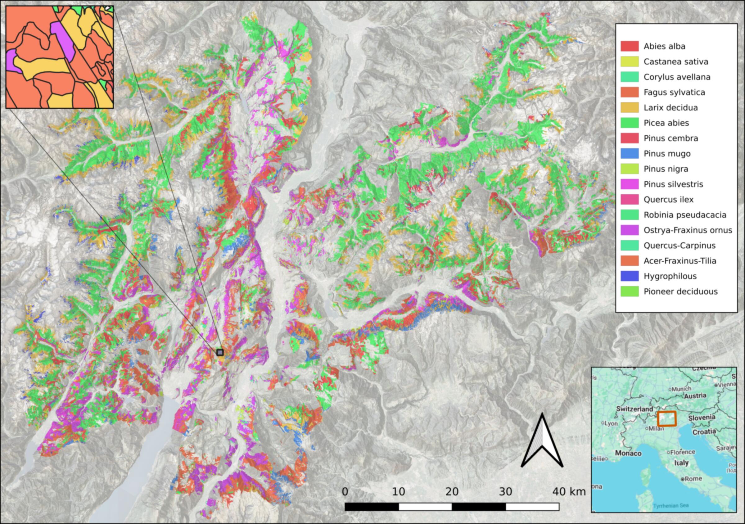 We use geospatial AI to create fine-grained, species-level maps of the world's ecosystems — from Alpine forests to tropical biomes — enabling scalable biodiversity monitoring and evidence-based conservation.